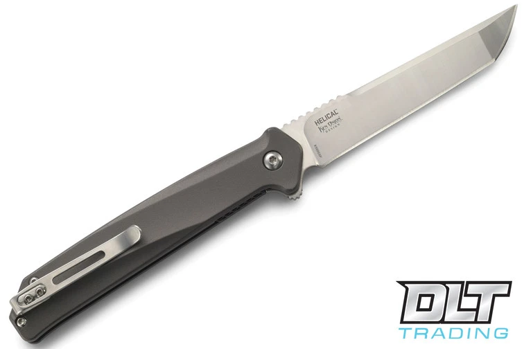 An everyday carry with a twist. This sleek, tactically-inspired folding knife is a Ken Onion thought experiment realized: what would it look like to put a rectangular knife handle in a vise grip and twist? In classic Onion form, the result is a surprisingly ergonomic and supremely useful everyday carry blade.
